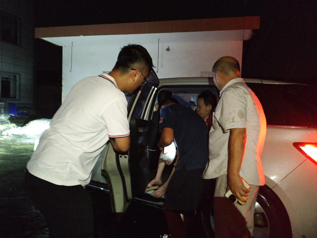 9月24日晚,李亞育(右一)和同事幫助村民轉(zhuǎn)移前往長岐衛(wèi)生院。