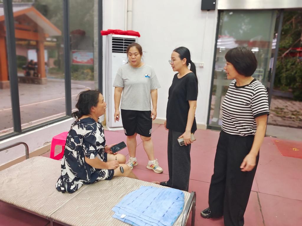 9月25日,黃夏寧(右二)和社區(qū)黨員干部到陽江市江城區(qū)閘坡鎮(zhèn)文化站的臨時(shí)安置點(diǎn)慰問群眾。